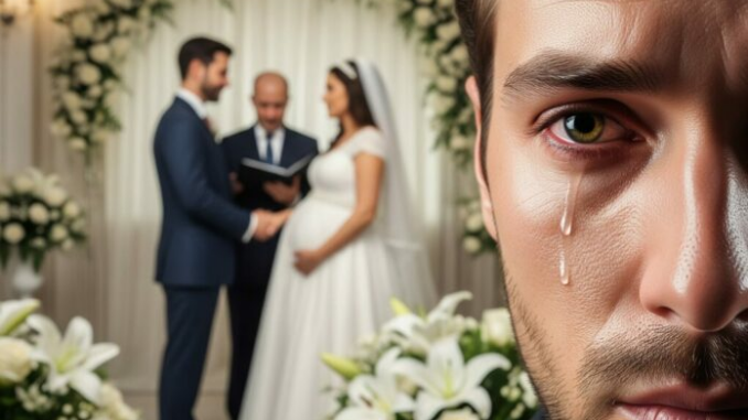 Durante la cerimonia, se ne stava seduto in silenzio nell’ultima fila, osservando il fratello, il suo sostituto, sorridere orgoglioso all’altare mentre Emily si cullava la pancia.
