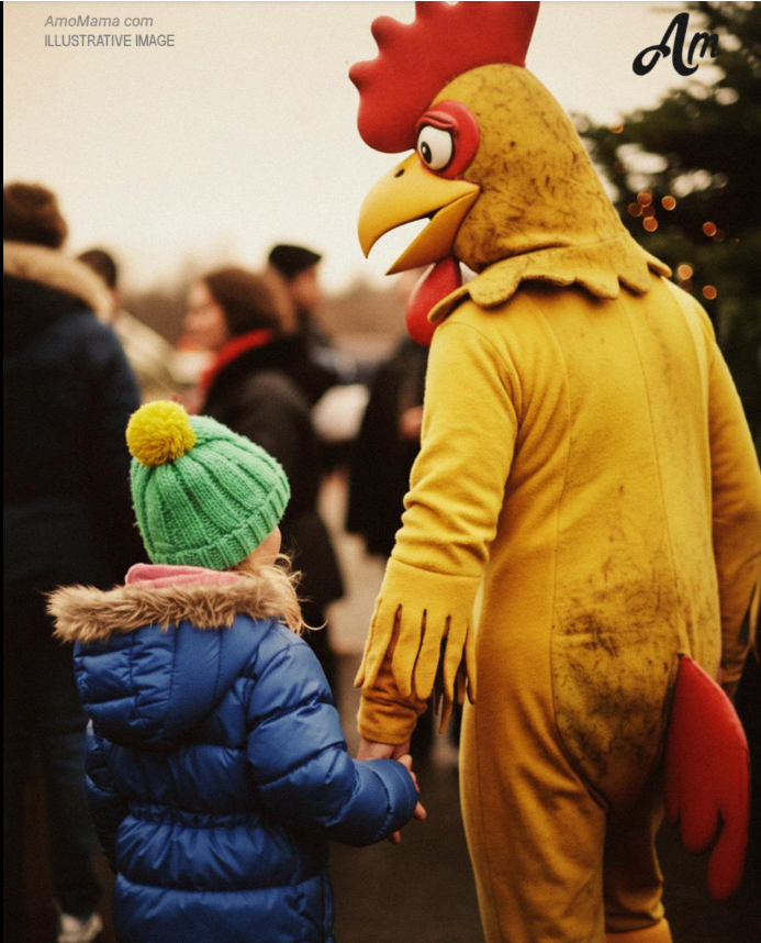 Evan smise di correre. Rimase lì, con Maddie in braccio, con il petto che si sollevava, e quel ridicolo costume da pollo rendeva l’intera scena ancora più surreale.
