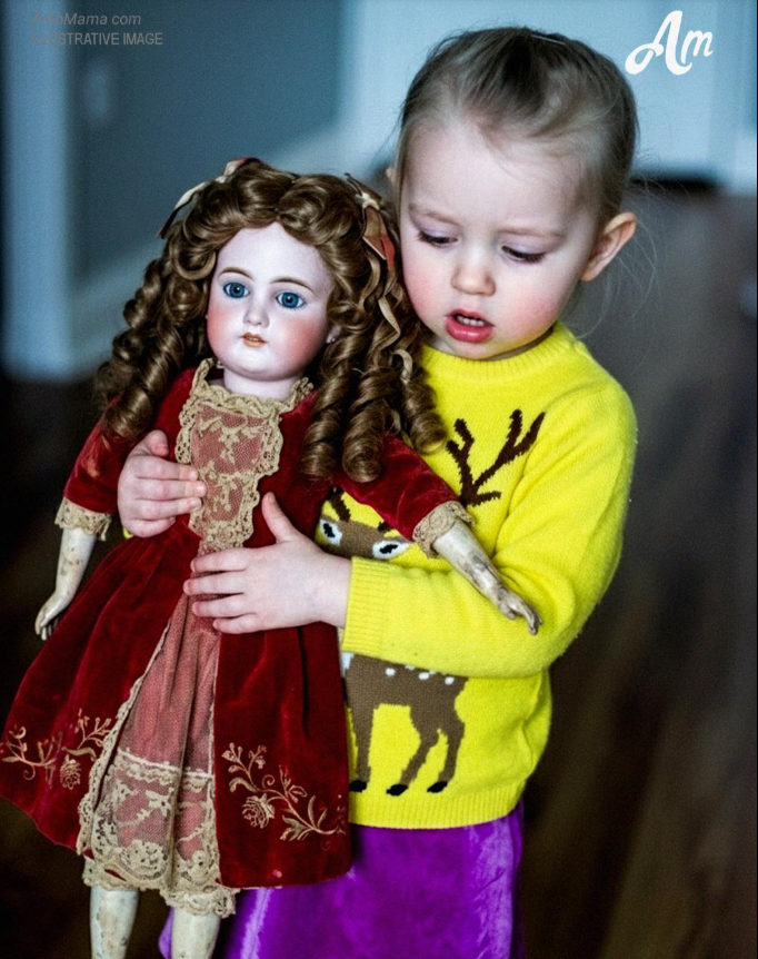 “È bellissima”, esclamò Eva, abbracciando forte la bambola. “Ha persino un bambino! Mamma, guarda!”