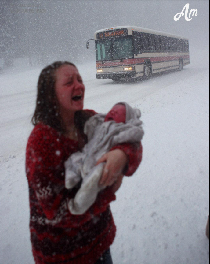 All’interno, l’autista era in piedi, incombente su una giovane donna che teneva in braccio un neonato avvolto in una giacca troppo grande.