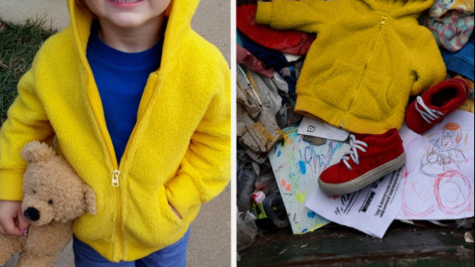 Le mie mani tremavano così forte che riuscivo a malapena a sciogliere il nodo, ma quando finalmente l’ho aperto, ho visto la felpa con cappuccio a forma di dinosauro di Caleb macchiata di fondi di caffè e bucce di banana, le sue piccole scarpe da ginnastica aggrovigliate con fazzoletti usati e i suoi disegni da supereroe accartocciati come carta senza valore.