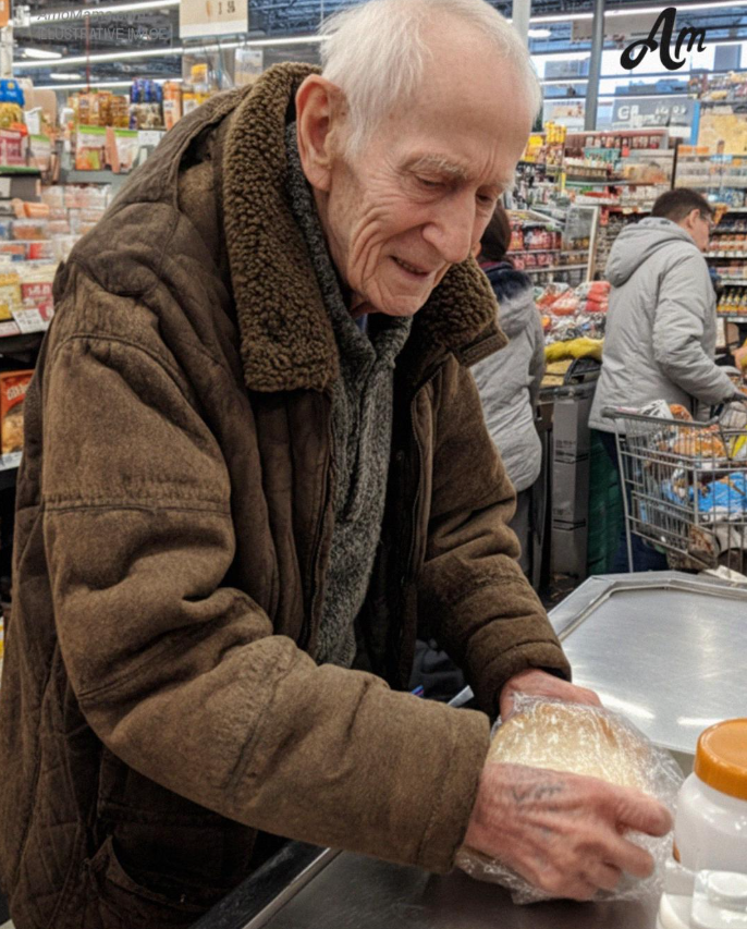 Davanti a me, alla cassa rapida, c’era un uomo anziano. Sembrava piccolo, leggermente curvo, con una giacca scolorita che aveva visto giorni migliori.