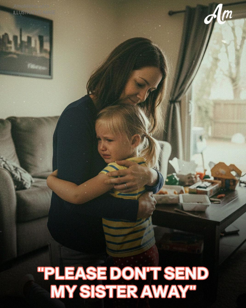 ” No! ” singhiozzò, correndo verso Rosa e aggrappandosi alle sue gambe. Il suo corpicino tremava per il panico. “Per favore, non mandare via mia sorella!”