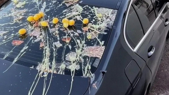 Non persi tempo. “Hai visto chi ha lanciato le uova sulla mia macchina?”