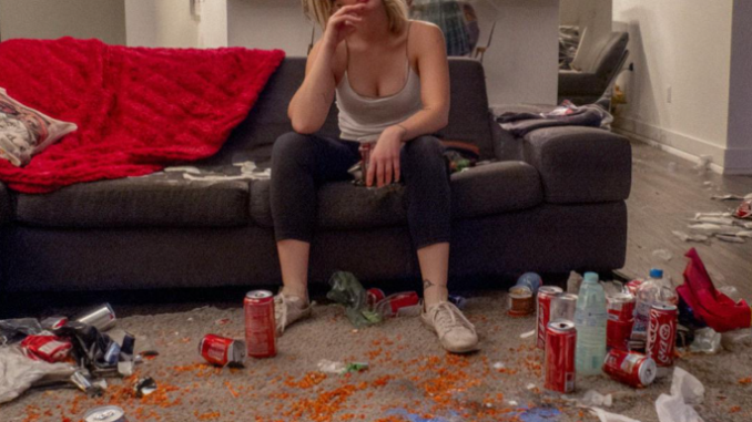 Due settimane si trasformarono in un mese, e il disordine si propagò come batteri in una capsula di Petri. Scatole di Amazon disseminavano l’ingresso: aperte, svuotate e abbandonate. I piatti migrarono dalla cucina a ogni superficie della casa, formando piccole colonie di abbandono.