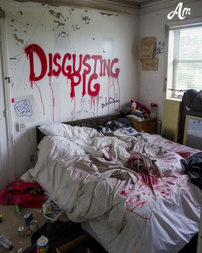 Eravamo fuori città per il weekend, la nostra prima vera vacanza dopo mesi. Al nostro ritorno, la porta era aperta. Niente rubato, ma tutto… rovinato . Il nostro letto era squarciato, i mobili ribaltati e il mio trucco era sparso dappertutto sul pavimento. E sui muri, scritte con vernice spray rossa, tre parole che non posso più dimenticare: