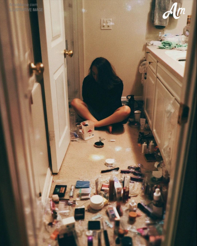 Una ragazza seduta sul pavimento del bagno | Fonte: Midjourney
